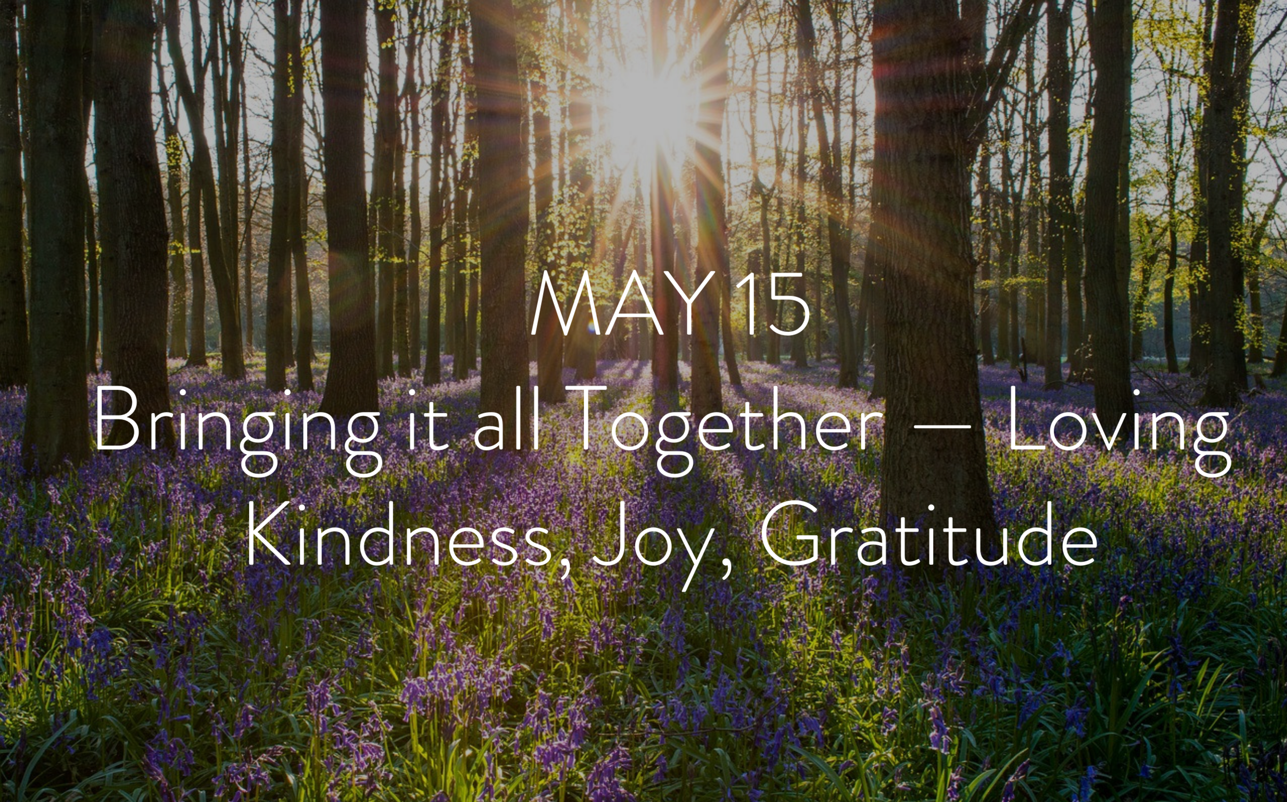 WEEK 6: Saturday, May 15 — Bringing it all Together: Loving Kindness, Joy, GratitudeLoving Kindness Meditation: Open Awareness Meditation: Full Class Recording: