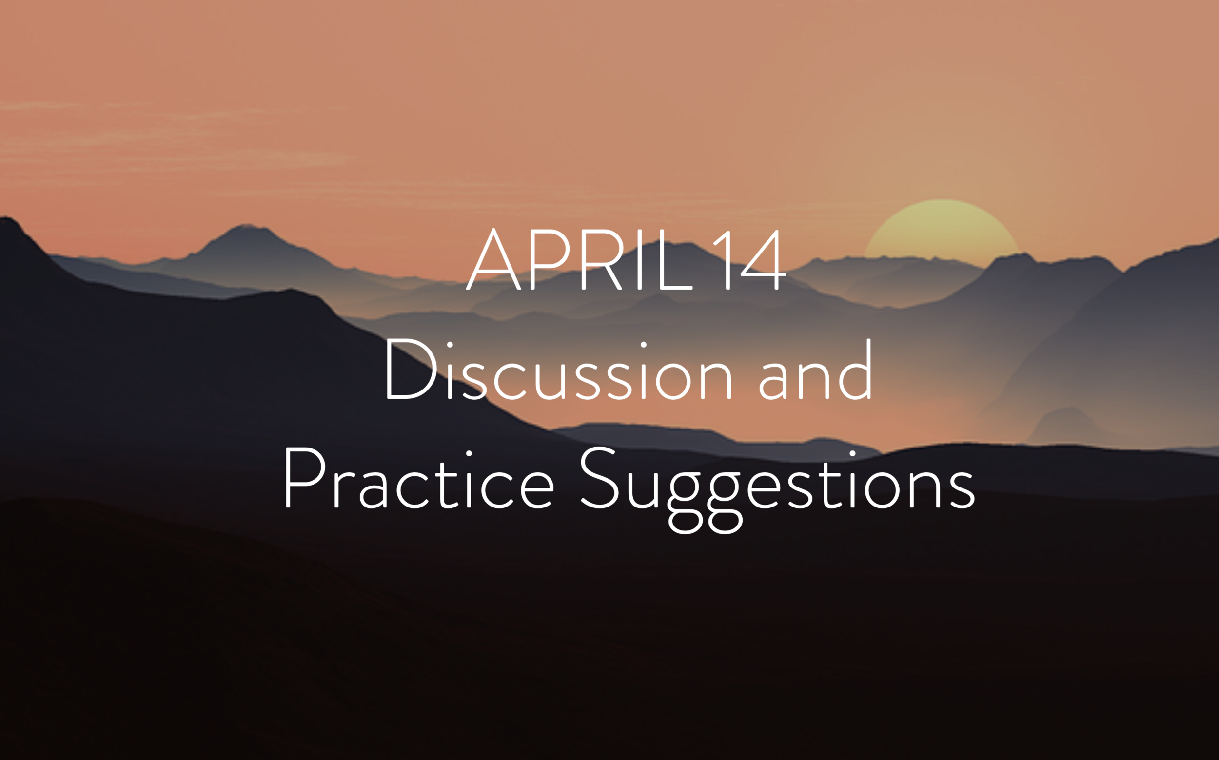 Wednesday, April 14th — discussion and Practice SuggestionsFull Class Recording Video: Off the Cushion Suggestions: